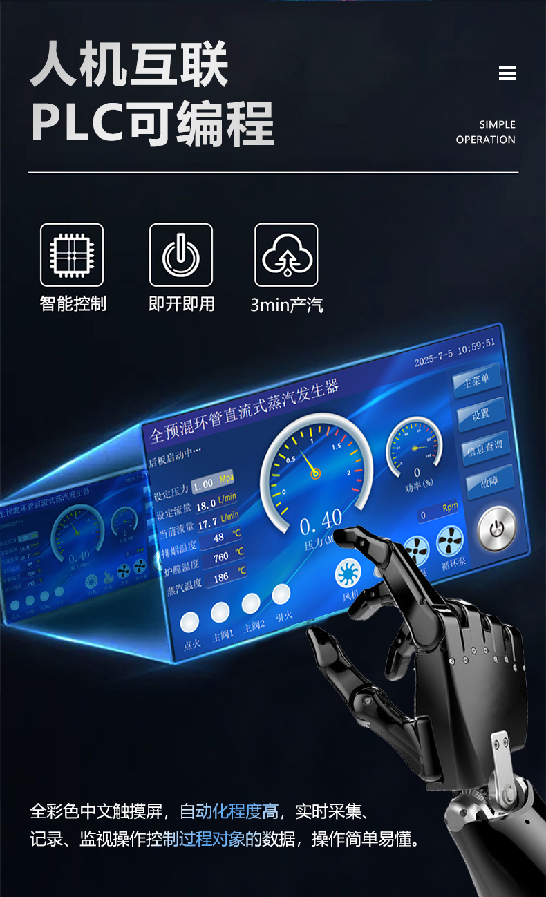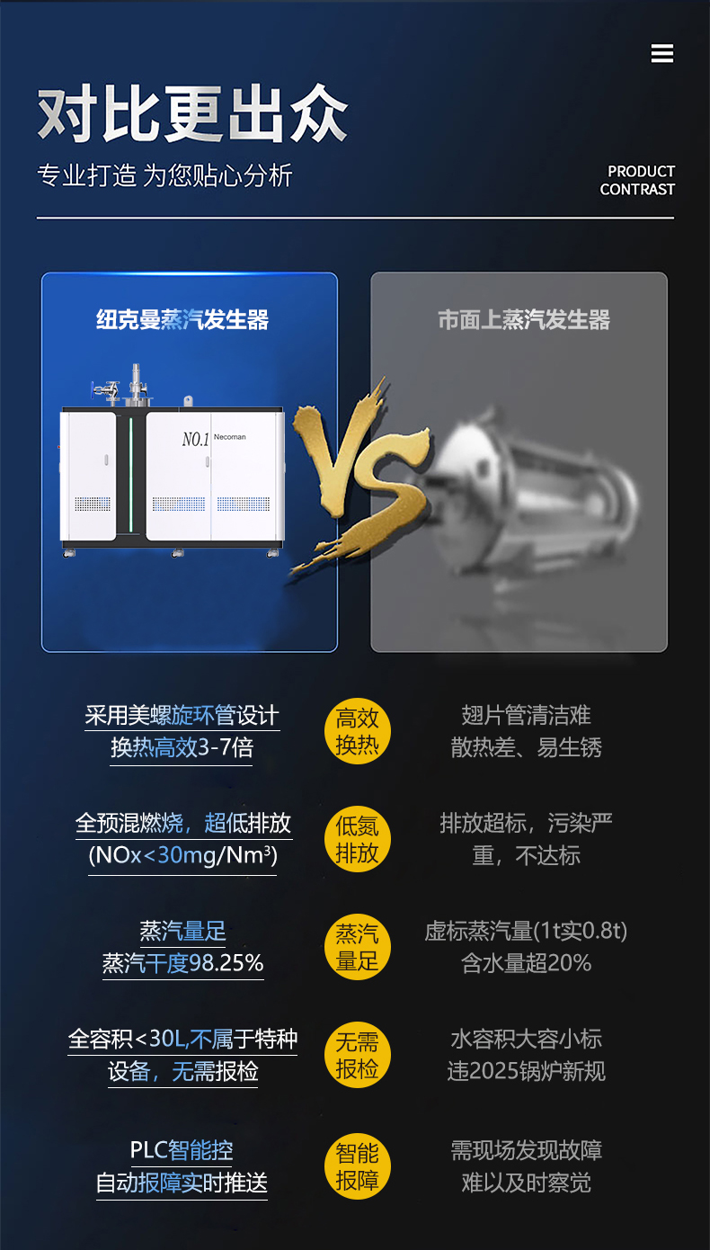蒸汽量:50kg至6T,無內膽,水容積<29L、產汽快、免報檢,低氮燃燒NOx排放<22mg/m3,符合環保要求,310S不銹鋼過流件直流環管結構,達到衛生級別,溫度、壓力、可定制,更多參數可致電15323300918...